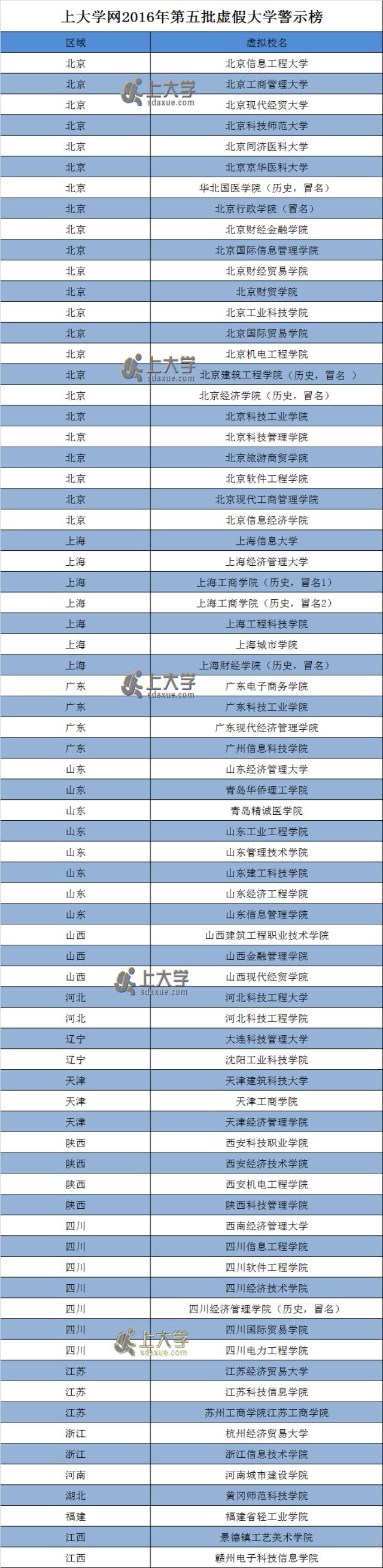 日前,“上大学网”发布《上大学网第五批中国虚假大学警示榜》,曝光涉嫌诈骗的73所“野鸡大学”,涉及16个省市,